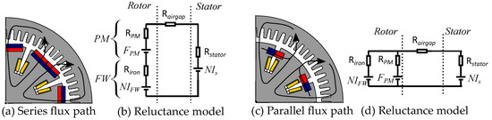 - Luo, X.; Lipo, T.A. A synchronous/permanent magnet hybrid AC machine. IEEE Trans. Energy Convers. 2000, 15, 203–210. [Google Scholar] [CrossRef]