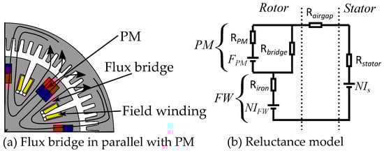 PMSM usually have the benefit of being able to reduce the volume and weight of the magneto-motoric force while also avoiding the copper losses of the field current. Moreover, they have the disadvantage of a non-variable magnetization so the magnetic flux cannot be controlled (as it can be controlled in WRSM). In this way, it could be desirable to introduce a variable flux, which would enable the control of the voltage, reactive power, power, or torque depending on the system of the application.