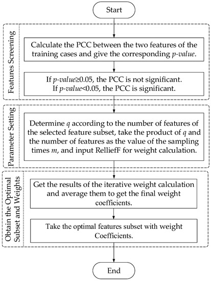 - In this paper, the limited coefficient q is introduced to solve the shortcomings of the ReliefF algorithm in application and combined with the Pearson correlation coefficient method to automatically screen the optimal feature subset. The optimal subset and feature weight are calculated by the improved ReliefF algorithm, and the average value of the weights is taken as the final weight value. The optimal feature subset containing the weight coefficient can be obtained. The weight coefficient can continue to be used to improve the performance and fault location accuracy of the WRF algorithm in subsequent steps.