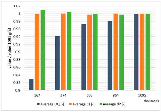 Mesh impact on the analysed parameters (reference value for 1095k mesh).