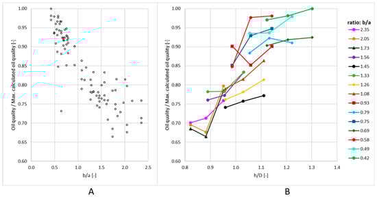 (A) b/a ratio impact on the oil quality; (B) h/D ratio impact on the oil quality.