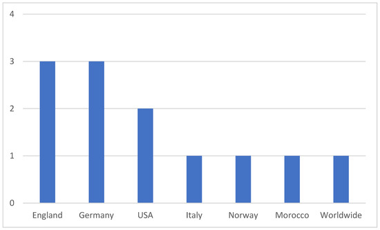 The online grocery channel was adopted almost worldwide. Shares of e-grocery markets are fragmented through countries with Asian ones as their leaders [50]. The UK is considered to have the third world-leading e-grocery market. It is also one of the countries most interested in e-grocery and its environmental impact according to the results (Figure 4). Three of the selected studies are from Germany despite the fact that it is a small market of online groceries and ranks low on an international scale [11,51]. However, environmental protection and Germany’s commitment to it are of great importance [52,53]. Efforts to address greenhouse gas emissions are undertaken worldwide and the USA widely contributes to these actions [54], having well in mind that online grocery in this country is predicted to grab 20% of the total market by 2025 [55].