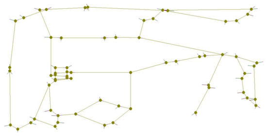 For the purpose of this article, a method based on changing the branch impedance values was used, which in some ways replaces binary methods. However, it is rather simplified. Instead of using a binary value of 0 or 1 in the vector describing the position of a given switch, the reactance values for the long line (which is not present in the system) and the very short line, respectively, are included. In the method used, the approximation is that there is no missing or direct connection. It is only necessary to speak of a low-impedance connection (for example when considering a substation connection) or a connection with a high impedance modulus (for an open link or the absence of a branch within a substation). However, this creates artificial connections within the substation, which do not exist in reality, but which the calculation programme can “route” power through as an alternative path.