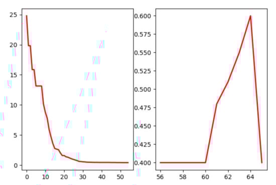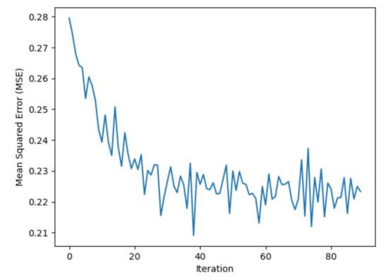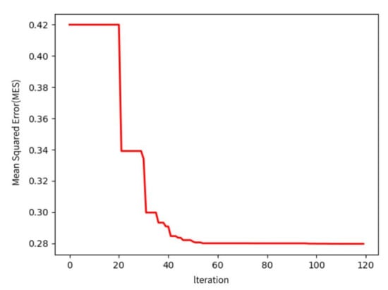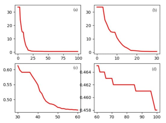 We will acquire 30 training errors after each training process. The best training error of each iteration is the output value. Figure 7a illustrates the downward trend of the best training error. In order to clarify the continuous reduction of the loss function in the presentation optimization process, we describe three different intervals during 0–100 iterations. b, c, and d in Figure 7 describe the decreasing trend of training error of 0–30 iterations, 30–60 iterations, and 60–100 iterations respectively.