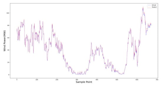 Despite the proposed algorithm focusing on short-term wind power forecasting, the optimization-forecasting process will be performed six times per week to account for different oscillations. Figure 9 shows the results of comparing the predicted wind power data with the actual data for the test week of 1 July to 7 July.