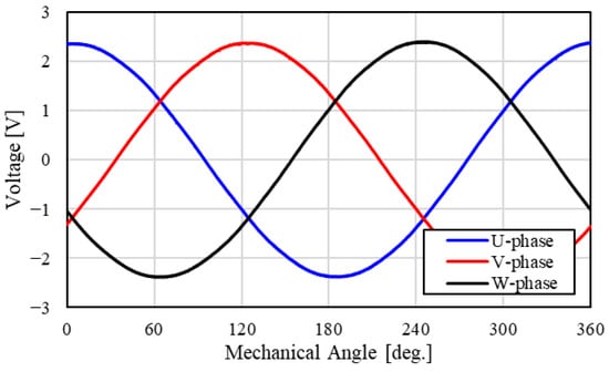 where Vn is each order component of back e.m.f. From this equation, the calculated THD was 0.0067. From there, it can be seen that the back e.m.f. waveform has mostly the primary component and has a sinusoidal waveform with few harmonic components.