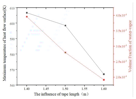 Maximum temperature and maximum bubble volume fraction under different tape lengths.