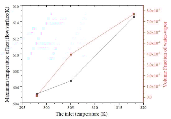 Maximum temperature and maximum bubble volume fraction with different inlet temperatures.