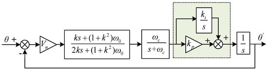 It is worth noting that the parameter of the PI controller in PLL not only directly affects its phase-lock performance, but also determines the stability of the inverter-grid interconnection system. For this purpose, the parameter optimization design method of proposed CCF-MFOF-PLL is given in this section. The small-signal model of CCF-MFOF-PLL can be deduced from Figure 5, which is shown in Figure 8.