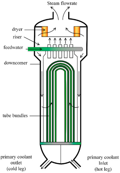 - Ma, S. Trip analysis and online diagnosis regulation for loosing water level control of the PWR steam generator. Nucl. Sci. Eng. 2009, 29, 328–332. [Google Scholar]