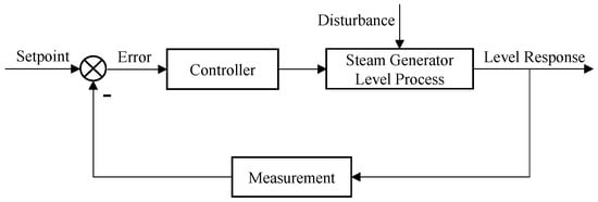 To ensure the safe and economical operation of nuclear power plants (NPPs), it is necessary to strictly control the level of steam generators (SG) in NPPs. An SG is a critical component of an NPP’s steam supply system, transferring heat from the primary loop to the second loop to generate steam. The SG level needs to remain around the programmed setpoint during the NPP operation. Poor level control performance may jeopardize the plant availability in making the electricity and supplying the heat for industrial applications. The level control performance may be affected by the transients, such as load change, steam flow change, feed water flow change, average coolant temperature change, and feed water temperature change. At the same time, the pressure and water temperature in the SG also change with various factors, resulting in the temporary swell and shrink’s effect of the water level, which also has a certain impact on the level control. Too high an SG level will reduce the dryness of steam at its outlet. This will aggravate the erosion of steam turbine blades, and even cause blade damage in severe cases. It also increases the condensate water, which can cause excessive cooling of the reactor core. When the top of the inverted U-shaped heat transfer tube is exposed due to the low SG level, it results in the decrease of heat transfer efficiency and heat transfer power, which makes the reactor temperature rise and threatens the safety of the reactor [4]. Improper steam generator level control system (SGLCS) is responsible for over 70% of losing level control accidents in NPPs. As a result, the performance of SGLCS is critical for stability, safety, and economy of SGLCS.