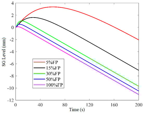 SG is a highly complex, nonlinear, and time-varying inverse dynamic system. Swell and shrink are one of an SG’s dynamic characteristics. The level of SG is influenced by many factors, of which the most important are the rate of the feedwater flow and the steam flow. However, at the same time, it is also affected by the feedwater temperature, the pressure in the SG, the number of bubbles, and other factors, and the level characteristics under different powers are also quite different.