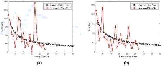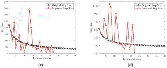 It can be seen from Figure 13 that the overall trend of the improved step size of IK-SPSA is consistent with the continuous decrease with the increase of iteration times, thus avoiding the oscillation near the optimal value. In addition, there will be some fluctuations in the step size, indicating that IK-SPSA can judge the current optimization process status and adjust the step size accordingly according to the current optimization process status. IK-SPSA can adaptively adjust the step size to find the optimal value.