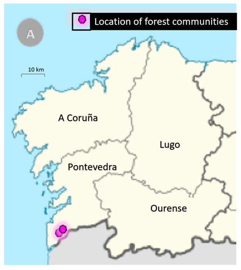 - Xunta de Galicia Montes Vecinales en Man Común. Available online: https://ovmediorural.xunta.gal/es/consultas-publicas/montes-vecinales-en-man-comun (accessed on 11 July 2022).