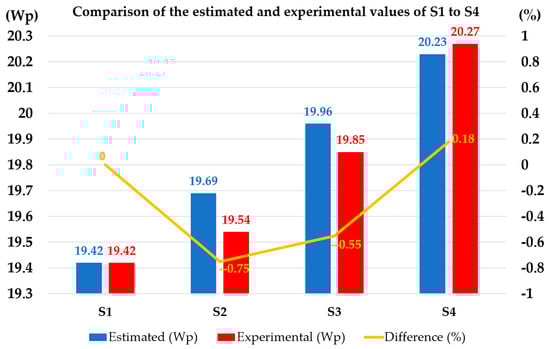 Comparison chart of estimated values and experimental values of samples S1–S4.