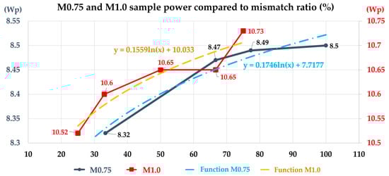 Power output of the M0.75 and M1.0 compared to the electrical mismatch ratio.