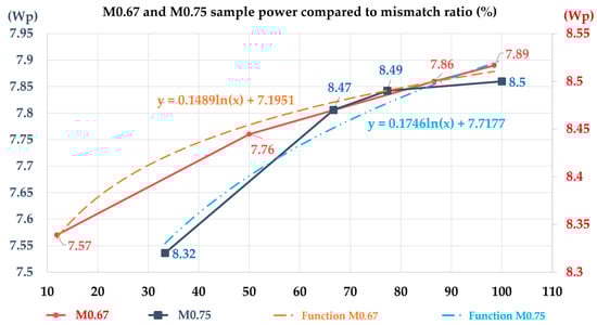 Power output of the M0.67 and M0.75 compared to the electrical mismatch ratio.
