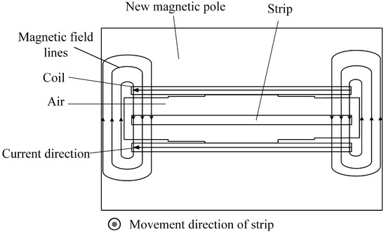 17], the magnetic flux generated by the heater coil passes through the air gap between the pole and the strip only once in the process of flow through the new magnetic pole, so the proportion of air in the magnetic circuit decreases, and the magnetic resistance of the alternating magnetic field through the magnetic circuit decreases.