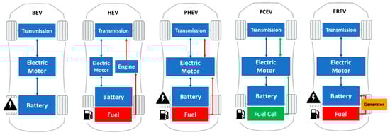 In terms of technologies and strategies, it is agreed that EVs can be grouped into five categories as highlighted in Figure 8 [23,34,35,36]: