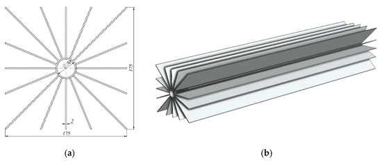 Aluminum finned tube with 16 fins, (a) Cross-section dimensions; (b) 3D geometry.