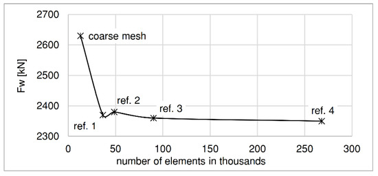 It could be noticed that a convergent solution was obtained for the third mesh refinement (ref. 3) with respect to the initial coarse mesh. The same level of mesh refinement was applied consistently in all the other analyses.
