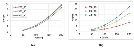 All results of the CFD analyses were related to 1 m of longitudinal finned tube length. The results were summarized in the form of graphs comparing the average wind load Fw at all finned tubes of vaporizer as a function of inlet wind velocity. Figure 5a presents results for wind direction of 90°, whereas Figure 5b refers to wind direction of 45°.