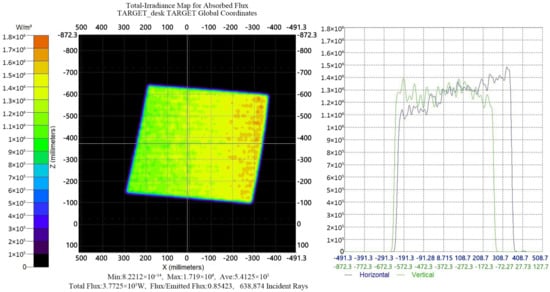 The uniformity values were 0.41 before the polynomial regression optimization and 0.62 after the optimization. After regression, the mirror accurately utilized most of the incident sunlight, as shown in Equation (8):