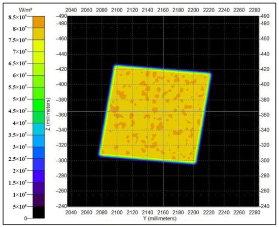 Illuminance map of the target plane, according to the freeform reflector design process.