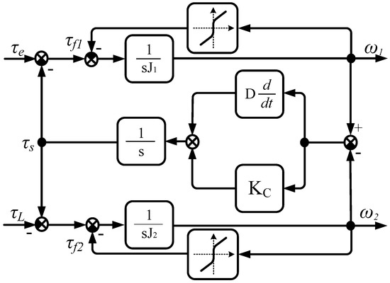 where: ω2—load speed, τe—electromagnetic torque, τs—shaft (torsional) torque, Kc—stiffness constant, D—damping factor of the shaft, τf1, τf2—friction torque of motor and load.
