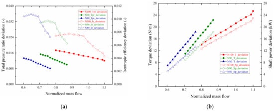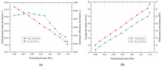 Since there are many direct or indirect measurement parameters involved, this paper does not show the random standard uncertainty distribution diagram of each measurement parameter result after measurements. Instead, the feasibility of the test plan before measurements is demonstrated by identifying whether the maximum random error after the error transmission is consistent with the engineering analysis, which can refer to the author’s previous article [25]. The relative errors of PRt, ηis, and Ps are generated by the uncertainty of the direct measurement value through the error transfer formulas. The error ranges of PRt, ηis, and Ps are calculated respectively as being ±0.07%, ±0.75%, and ±0.31%, which can be accepted in experimental analysis and engineering applications.