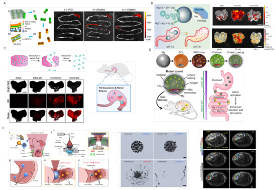 - Li, J.; Thamphiwatana, S.; Liu, W.; Esteban-Fernández de Ávila, B.; Angsantikul, P.; Sandraz, E.; Wang, J.; Xu, T.; Soto, F.; Ramez, V.; et al. Enteric Micromotor Can Selectively Position and Spontaneously Propel in the Gastrointestinal Tract. ACS Nano 2016, 10, 9536–9542. [Google Scholar] [CrossRef]