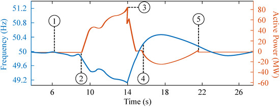 On 31 January 2020, the South Australia–Victoria Heywood interconnector tripped, and HPR response helped stabilize the South Australian network. Figure 11 shows the active power response of the battery to the frequency variation [68]. During this event, HPR transitioned from standby to 91 MW charging. The fast frequency response of BESS demonstrates its capability to reduce the severity of major disturbances while stabilizing the network.