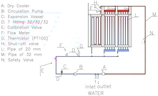 Based on these considerations, the University of Palermo, through the SMARTEP project “sustainable model and thinking of renewable energy parking” [], is creating an experimental area, where, in addition to the development of an innovative intelligent energy parking system, it envisages the construction of a road thermal collector for collection of solar energy, directly connected to seasonal low-temperature geothermal storage, with vertical probes. This research project’s various objectives include being able to investigate the best solution and boundary conditions for a commercial diffusion of an RTC system with geothermal storage in the Mediterranean area, maximizing the accumulation phase in periods of greater sunshine. In this research, we experimented in the field of a thermal RTC integrated with a geothermal storage system in the Mediterranean area. In particular, after careful analysis of the sector bibliography, thanks to the SMARTEP experimental area, it will be possible to investigate, in the field, the best solution, configuration, and main boundary conditions that can maximize the efficiency and effectiveness of an alternative solar system, and innovativeness, such as solar collectors embedded in paved surfaces (asphalt, sidewalks, roads, parking lots), integrated with a geothermal seasonal storage system.