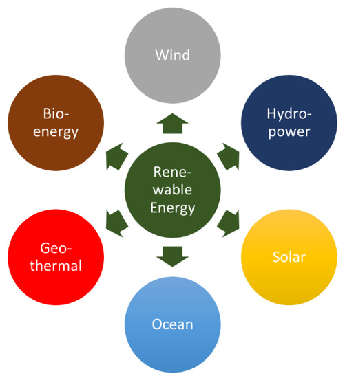 The transition landscape is more complex [8]. Transitions vary from country to country, and they sometimes vary even within the same country due to distinct challenges imposed by topography, the historical evolution of national energy markets, and cultural variables [9]. The methods of generating and using particular forms of renewable energy vary [10]. The International Renewable Energy Agency (IRENA) identifies six basic forms of renewable energy [11] and analyses their development worldwide (Figure 1).