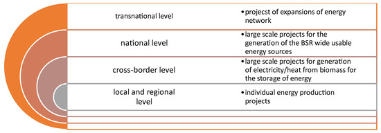 The Baltic Sea Region is defined and delimited in various ways. In the narrow meaning, it covers eight Baltic states, i.e., Denmark, Sweden, Finland, Russia (northern regions), Estonia, Latvia, Poland, and Germany (northern regions). In the wider meaning, the region embraces also countries of the Baltic Sea catchment area: that is, Norway and Belarus [37]. International cooperation lasted many years in the Baltic Sea Region [38,39] underwent dynamic acceleration with Poland and the Baltic States joining the European Union in 2004. Soon, the Baltic Sea region stood apart from other transnational regions, including EU macroregions, because of the high level of cooperation between local, regional, and national authorities. The BSR states, cooperating within the Council of the Baltic Sea States, were the initiators of the Baltic integration at the end of the twentieth century. Cities and regions have increased their activities throughout time, and they have also developed networking organisations. In such conditions, multi-level collaboration in the Baltic Sea region was required to be coordinated. This was made feasible in large part by an EU initiative in which the Baltic Sea Region’s countries agreed to establish and implement a macro-regional strategy, namely the EU Strategy for the Baltic Sea Region [40]. The primary objective of the strategy was to save the Baltic Sea, to connect and to augment the prosperity of the region. Renewable energy development improves all these areas and is the key factor in implementing EU energy policy priorities [41]. The first Action Plan of EUSBSR emphasised renewable energy problems [42].