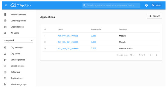 In addition to an ESP board, the edge device includes a LoRaWAN [30] module that forwards the data to a remote LoRaWAN gateway. Figure 2a shows an ESP32 equipped with an on-board LoRaWAN chip [31] that enables the board to function as a LoRaWAN edge device. In this implementation, the ESP32 + LoRaWAN board was used as an edge device, while the Gateway consisted of a Raspberry Pi (RPi) equipped with a RAK Wireless LoRaWAN multi-channel shield [32] (shown in Figure 2b. Edge devices communicate with the gateway over the 868MHz frequency band. In addition to forwarding data from the LoRaWAN network over the internet, the gateway hosts the Chirpstack LoRaWAN server stack which performs device identification and management. The Chirpstack interfaces is shown in Figure 3.