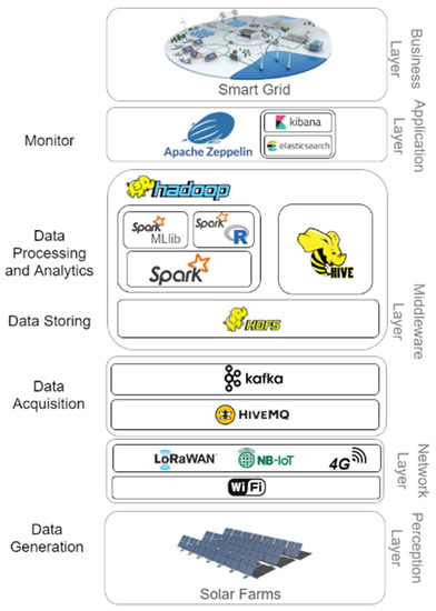- Shapsough, S.; Zualkernan, I. Designing an edge layer for smart management of large-scale and distributed solar farms. In Information Science and Applications; Kim, K.J., Kim, H.-Y., Eds.; Springer: Singapore, 2020; pp. 651–661. [Google Scholar]