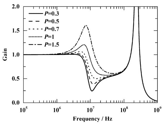 The amplitude–frequency response curve of the voltage divider under different degrees of compensation is shown in Figure 10 for when L1C1 > L2C2. The results show that the upper cut-off frequency can be limited by a too high or too low degree of compensation. Generally, the degree of compensation is slightly less than 1. In this paper, the degree of compensation degree is about 0.8.