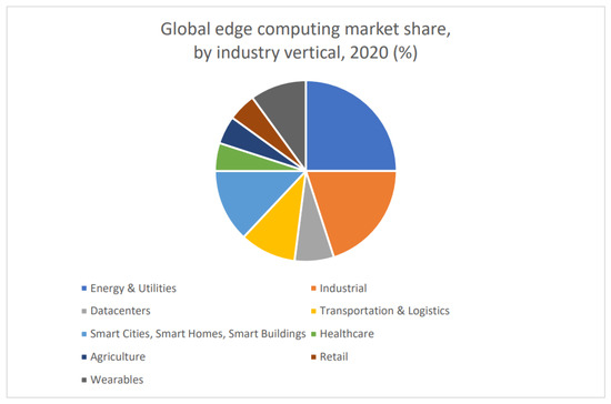 Accordingly, the relevance of edge computing platforms has been emerging in several application scenarios, as shown by the pie chart in Figure 3 [17].