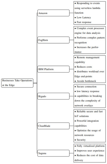 Businesses taking operations at the edge: Amazon, ClearBlade, FogHorn, IBM, Rigado, Saguna [57,58,59,60,65,67,68].