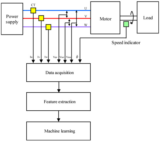 Several studies are being conducted to investigate the detection of bearing faults. The most common detection method used in [2,3,4,5] has some disadvantages such as the high cost of vibration sensors and installation requirements. Acoustic emission-based techniques are used to diagnose bearing faults [6,7,8]. Furthermore, multi-physical fiber optic sensors for bearing condition monitoring [9], and a driving sound-based technique for diagnosing bearing and short-circuit faults [10] are proposed.