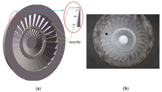 (a) Schematic structure of co-rotating swirler; (b) the swirler for the experiments.