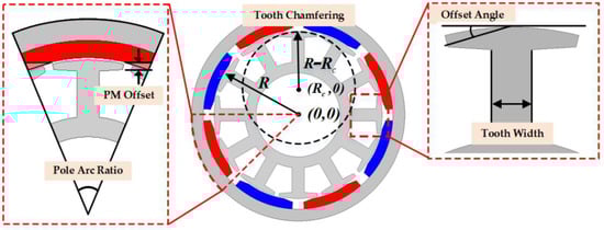 - Li, J.; Liu, Z.; Jabbar, M.; Gao, X. Design Optimization for Cogging Torque Minimization Using Response Surface Methodology. IEEE Trans. Magn. 2004, 40, 1176–1179. [Google Scholar] [CrossRef]
