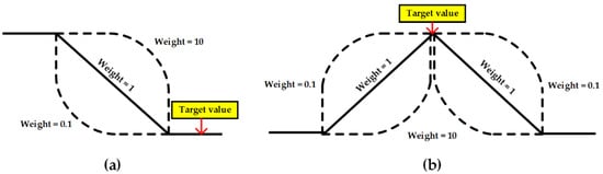 Desirability function for (a) smaller the better characteristics and (b) nominal is the best characteristics.