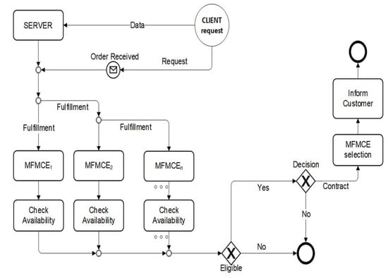 Negotiations with multiple MFMCEs present opportunities and difficulties. As the system runs, after receiving a client’s order, which the system will automatically convert to a production plan containing necessary processes, operations, and resources, each MFMCE checks possibility to work on its own or in cooperation with each other. The MFMCEs prepare their own offers, including possible offers from small production consortia, and negotiate via the MFMC production–service platform. An appropriate dataset is generated by the system as a base for the evaluation and selection of proper MFMCE. One should notice that as multiple MFMCEs may be eligible, i.e., different MFMCEs may be able to complete the same task, an indecision problem may occur. Thus, in order to overcome this problem, the client’s multicriteria decision protocols are used.