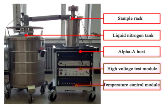 15]. FDS measures the voltage at both ends of the medium, under different frequency electric fields, and the current flowing through the medium, and it calculates the change of its complex permittivity, complex capacitance, dielectric loss factor, and other dielectric parameters, with frequency according to the size of the dielectric.