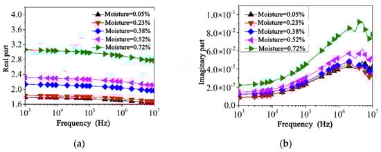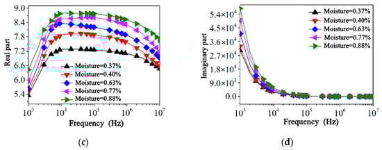 As can be seen from the above figure, the real and imaginary FDS of relative permittivity, of oil-impregnated insulating paper and semi-conductive paper, both increase with the increase in water content, and the changes are obvious. This is because water molecules are polar molecules and will participate during the polarization process; the greater the moisture content in the insulating material, the more polar molecules involved in the polarization and the stronger the polarization. In addition, the increase in the moisture content of the insulating material not only increases the interface loss between oil and paper but also the conductivity of the insulating material. The rate also increases with the increase in moisture content, and its conductivity loss also increases. In addition, the complex relative permittivity of insulating materials varies significantly with frequency. It can be seen that the influence of water content and frequency on the distribution parameters of IOCT main insulation cannot be ignored.