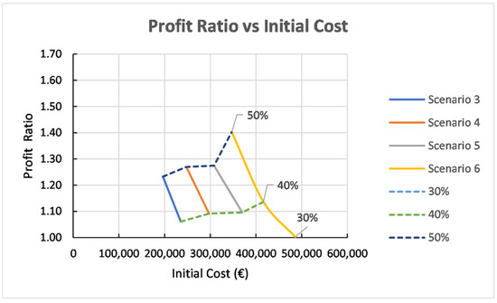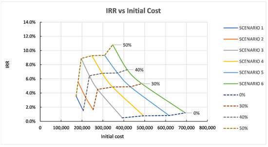 Considering Equations (7)–(11), the initial cost required for the investment is calculated as: