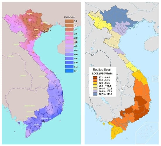 Solar potential and LCOE for RTS in Vietnam in 2019–2020. (Adapted from Refs. [45,66]).
