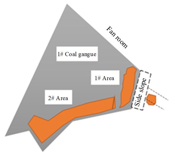 Using gel–foam fire-extinguishing technology through the construction of boreholes in the gangue mountain natural fire area, composite materials can be injected. These composite materials contain water, can absorb heat, can quickly reduce the temperature, and can effectively play the role of blocking the air leakage channel, achieving the purpose of extinguishing the fire area.